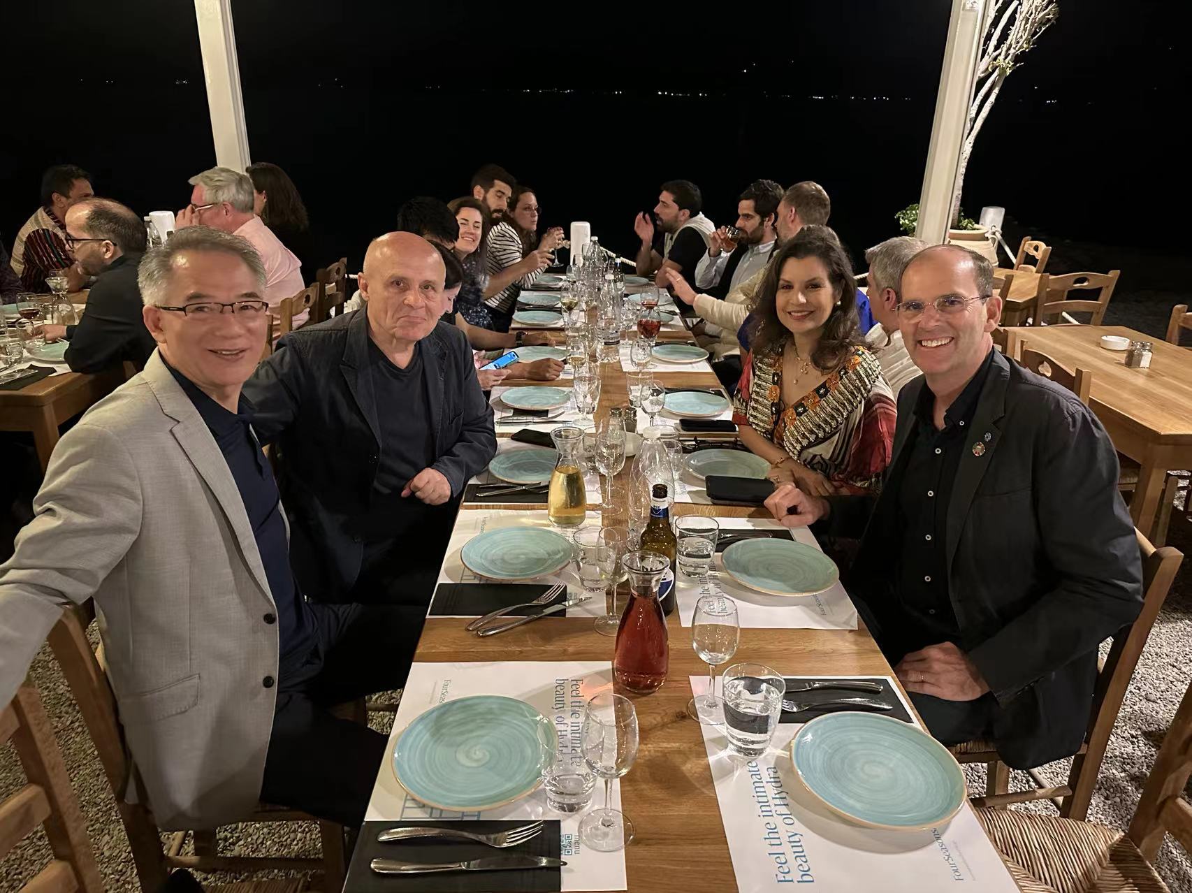 图3 焦念志院士与美国伍兹霍尔海洋学研究所(Woods Hole Oceanographic Institution)高级顾问Kilaparti Ramakrishna、蓝色季节(Saison Bleue)基金会负责人Rym Benzina和海洋竞赛(Ocean Race)主席Richard Brisius交流