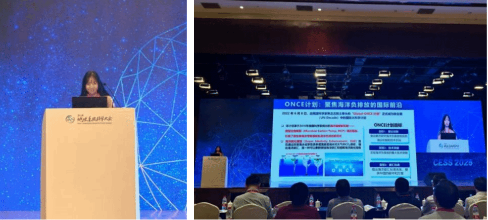 联合国“海洋科学促进可持续发展十年(2021-2030年)”成果发布会也在此次会议中顺利召开。发布会围绕中国“海洋十年”进展以及我国获批的9项大科学计划展开,其中来自ONCE计划的厦门大学碳中和创新研究中心骆庭伟副主任和中国科学院海洋研究所类彦立研究员围绕“全球海洋负碳排放”作报告,以微生物碳泵为核心理论,提出“从科学到治理”的全链条解决方案,涵盖基础研究、示范工程、国际合作及标准制定,为全球海洋碳汇发展贡献中国智慧。
