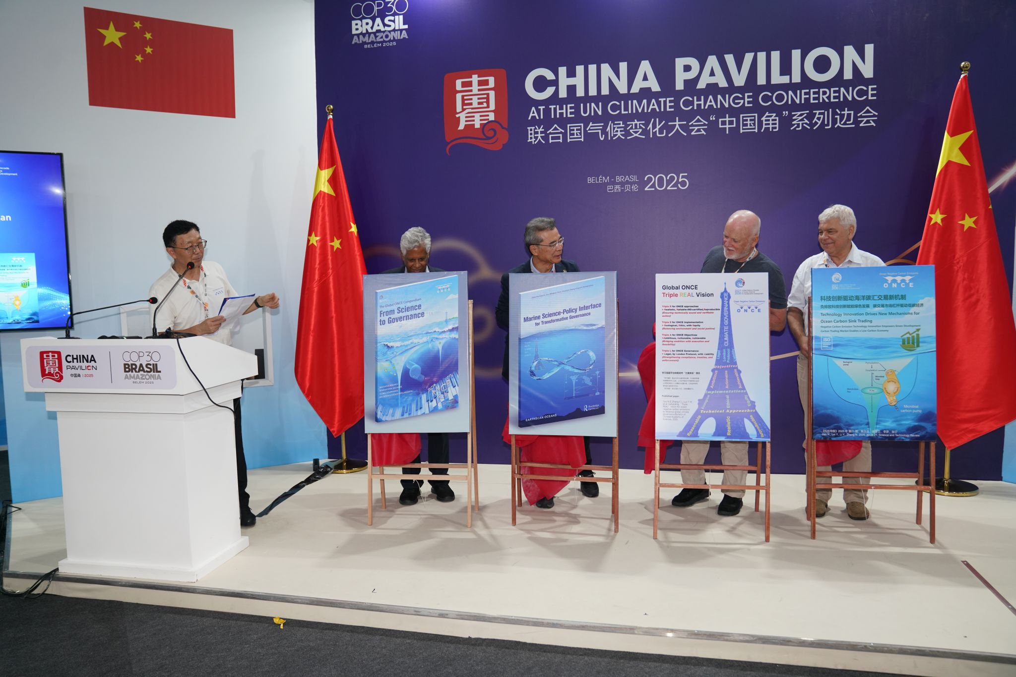 在联合国气候变化框架公约第30次缔约方大会(COP30)于贝伦召开之际,由我国发起并牵头实施、纳入联合国 “海洋十年” 框架的海洋负排放国际大科学计划(ONCE 计划)携中国科协联合国咨商海洋生态可持续发展委员会,成功举办 “海洋的契机:于 COP30 交付基于科学的 ONCE 行动计划” 高级别边会。