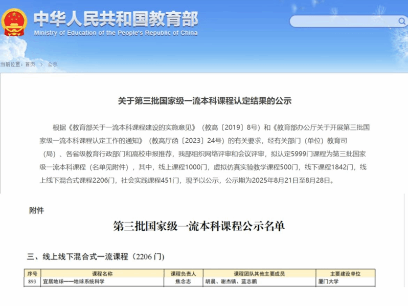 近日,教育部发布了《关于第三批国家级一流本科课程认定结果的公示》,中心首席科学家焦念志院士领衔的《宜居地球——地球系统科学》课程入选线上线下混合式一流课程认定名单,是ONCE课程建设中的里程碑进展。