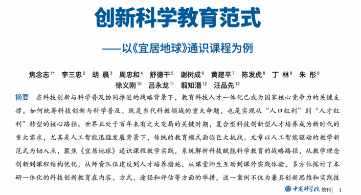 【人才培养】创新科学教育范式——以《宜居地球》通识课程为例