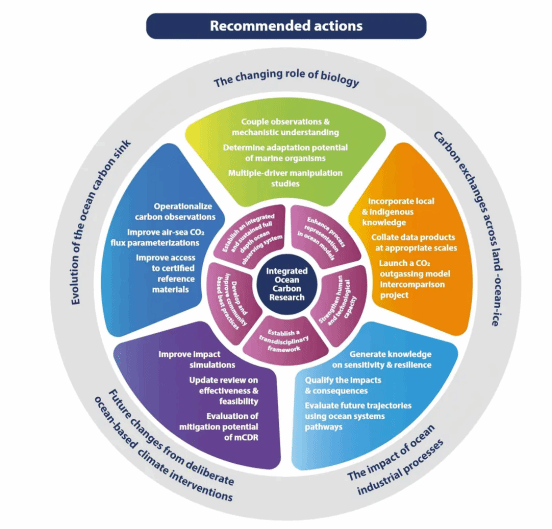 围绕上述方向,报告提出实施综合海洋碳研究的优先行动方案,包括:整合卫星遥感、自主观测平台与长期原位观测,构建全球协同观测网络;优化模型结构,更准确刻画物理、化学与生物过程;加强数据整合与产品合成能力;强化全球科研能力建设,尤其是在数据匮乏地区;推动跨学科合作,使科学认知更好服务社会决策需求。