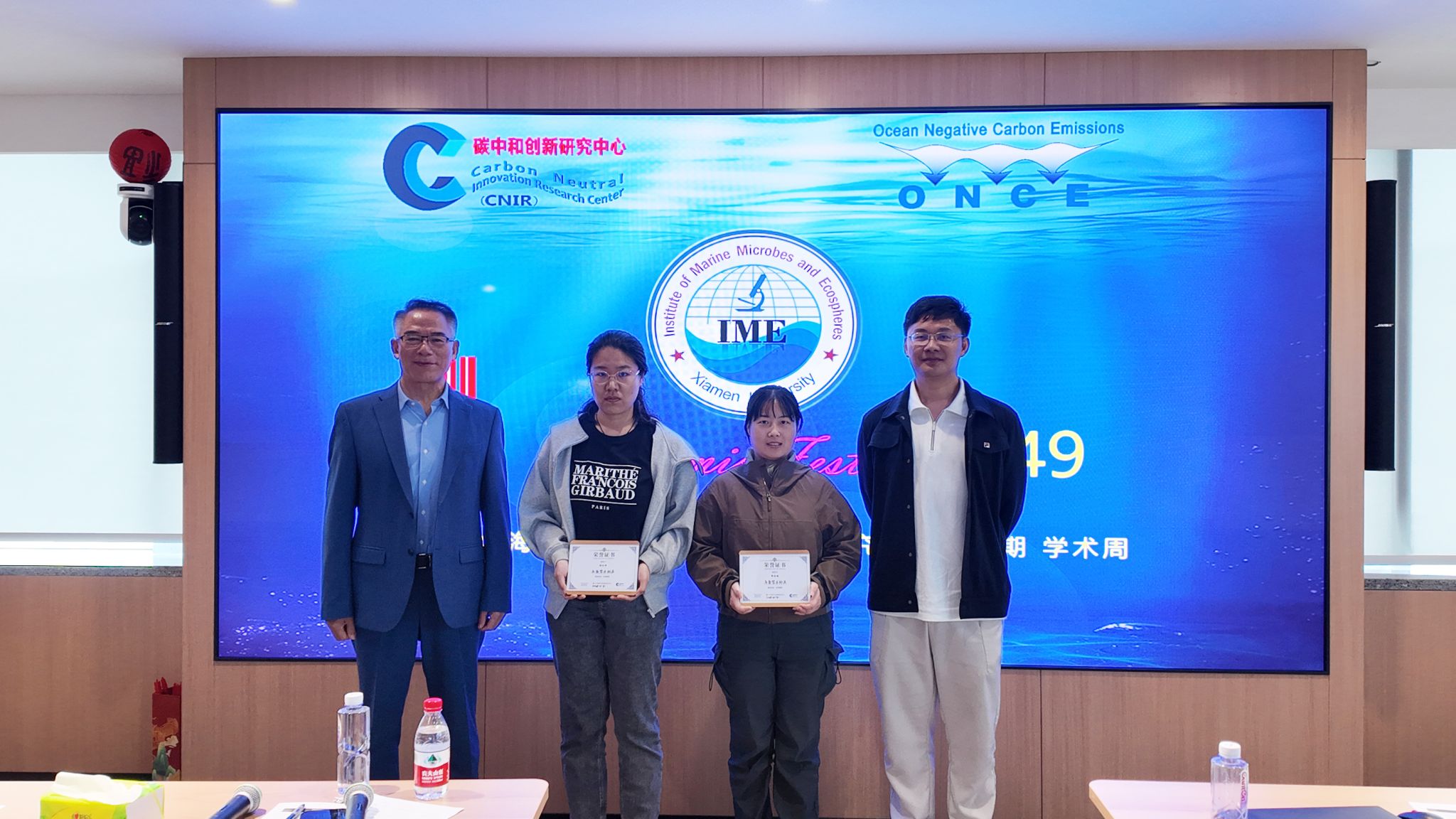 4月8日,学术周举行优秀学生表彰仪式。焦念志院士亲临现场,为获评“年度学术标兵”“优秀学生”“专项贡献荣誉”的同学们颁奖,与青年学子亲切交流,勉励大家珍惜中心平台资源,深耕海洋负排放与碳中和领域,勇于探索、大胆创新,以青春力量服务国家“双碳”战略。