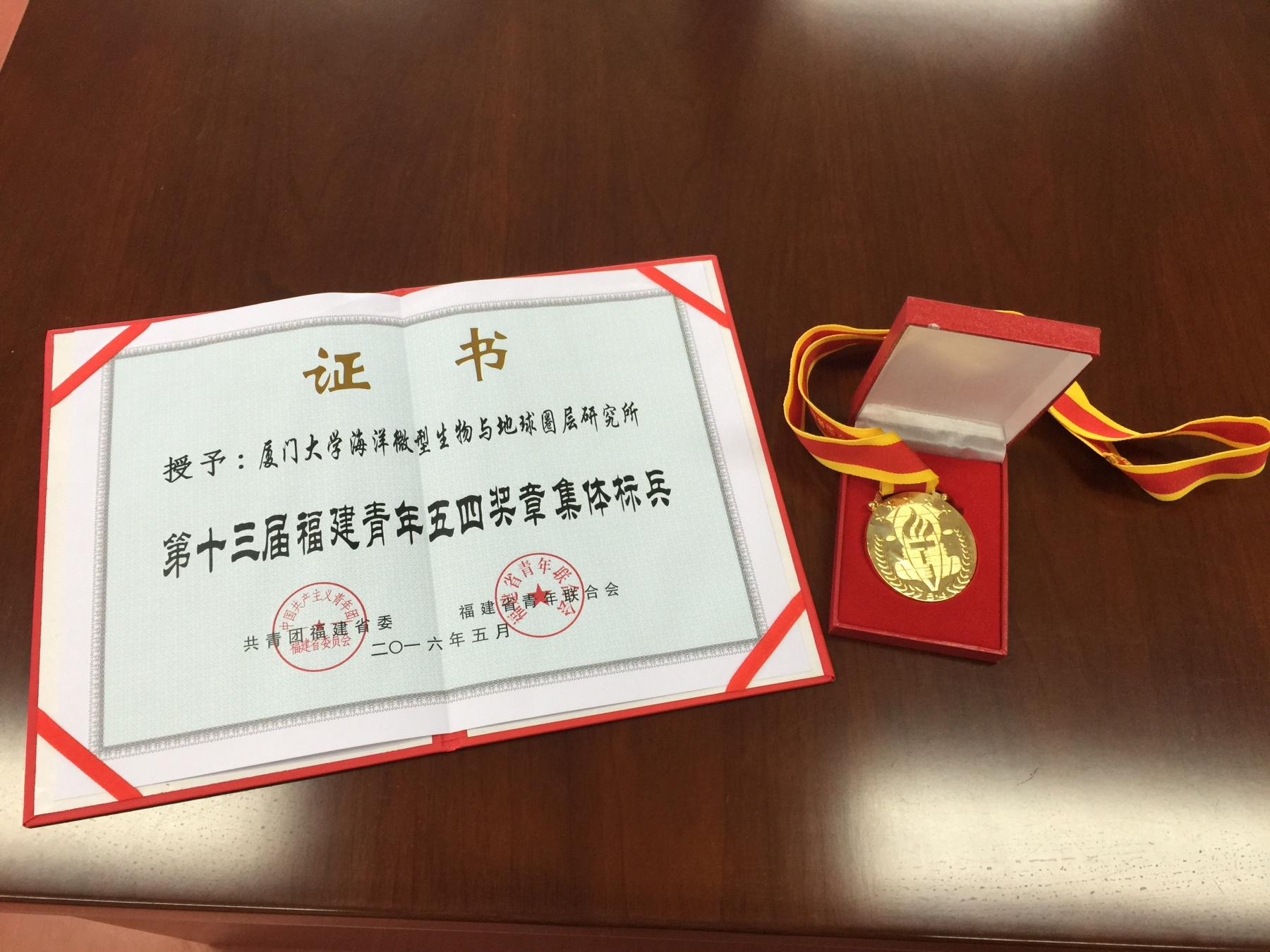 2016年5月3日,福建省纪念“五四运动”97周年暨“聚焦创新创业,助力脱贫攻坚”青年典型分享会在福州举行,大会表彰了第十三届福建青年五四奖章集体和个人、2015年度福建省五四红旗团委、团(总)支部、优秀共青团员、优秀共青团干部。其中,厦门大学海洋微型生物与地球圈层研究所(Institute of Marine Microbes and Ecospheres,IME)获第十三届福建青年五四奖章集体标兵。厦门大学海洋微型生物与地球圈层研究所(IME)成立于2012年5月,其前身是始建于2000年的“海洋微型生物生态学实验室”,团队由首席科学家焦念志院士,党宏月教授、张瑶教授、张锐教授等8位学科研究员,以及支撑团队和在读学生等共78人组成。